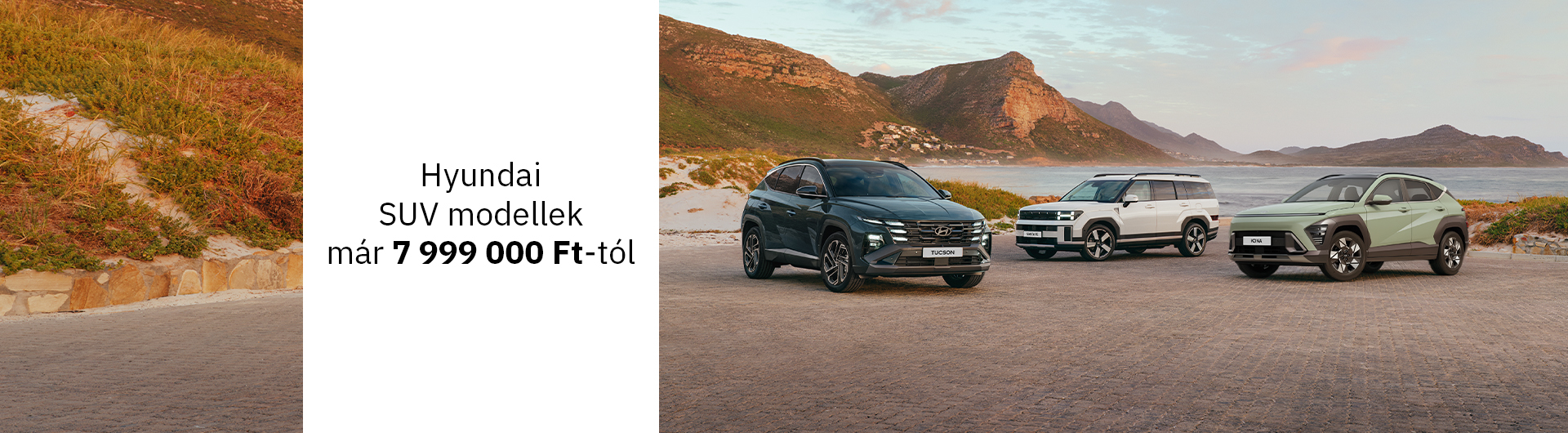 Jelen finanszírozási ajánlat kizárólag az Euroleasing Zrt. mint finanszírozást nyújtó társaság (továbbiakban: finanszírozó) forint alapú, rögzített kamatozású, zártvégű pénzügyi lízing ajánlata, amely maximum 80% kezdő lízingdíj, valamint 24 hónap futamidő esetén érvényes. A folyósítás feltétele a pozitív hitelbírálat. Az ügyfelet terheli zártvégű pénzügyi lízing esetén a gépjármű tulajdonjogának a futamidő végén történő megszerzésére tekintettel fizetendő visszterhes vagyonszerzési illetékmely a gépjármű forgalomba helyezésekor esedékes. A THM meghatározása az aktuális Üzletszabályzatban foglalt feltételek, illetve hatályos jogszabályok figyelembevételével történik, a feltételek változása esetén ennek mértéke módosulhat. A finanszírozó az Üzletszabályzatában feltüntetett díjak érvényesítésére jogosult, továbbá a finanszírozással kapcsolatos, harmadik személy részére fizetendő költségeket (pl. hitelbiztosítéki nyilvántartásba vételi díj: 7 000 Ft) jogosult az ügyfélre továbbhárítani. THM: fix 2,9%. A THM nem tükrözi a finanszírozás kamatkockázatát és nem tartalmazza a casco biztosítás díját. A finanszírozás teljes futamideje alatt Casco biztosítás fenntartása szükséges. A finanszírozott összeg minimális és maximális összege: 4 000 000 Ft. Az akció kizárólag minden új Hyundai Tucson, Kona EV, Ioniq 5 és Ioniq 6 modellre érhető el. A bruttó lízingtőke (teljes vételár + regisztrációs adóra vetülő ÁFA) maximuma: 20 000 000 Ft. A tájékoztatás nem teljes körű és nem minősül szerződéses ajánlatnak, továbbá a finanszírozó fenntartja a finanszírozási kondíciók változtatásának, valamint az akció visszavonásának jogát. Az akció 2026. 03. 31-ig tart. Jelen ajánlatban meghatározott feltételek az akció lejáratának időpontjáig benyújtott finanszírozási kérelmek esetén alkalmazandók, amennyiben az ügyfél megfelel a bírálati feltételeknek. Az ajánlatban szereplő finanszírozási kondíciók érvényességét befolyásolja a kereskedő partnereknél rendelkezésre álló készlet.